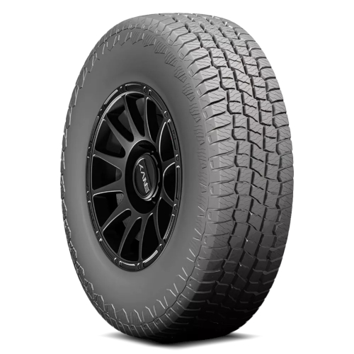 The all-new Terreno A/T is designed to provide on-road performance with off-road durability. The offset chevron grooves provide added traction in mud dirt and other soft surface terrain. Optimized siping provides improved wet traction element flexibility and severe weather rated snow traction. The variable pitch pattern reduces noise propagation to provide a quiet and comfortable ride.