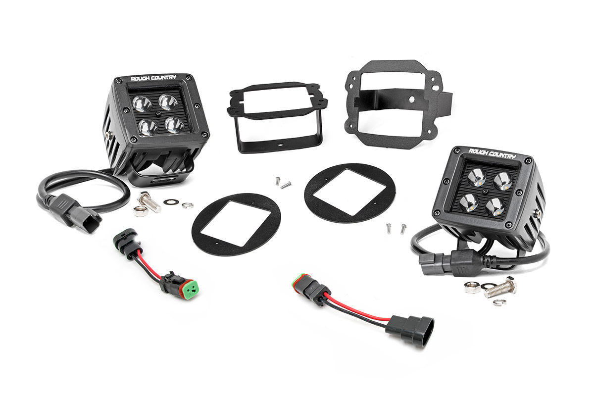 Bring the state-of-the-art power and efficiency of LED lighting to your Jeep JK`s factory fog lights with Rough Country`s new Black-Series 2-inch Fog Light LED Kit. This innovative kit allows you to swap out the factory fog lights with Rough Country`s 2-inch LED Cubes, offering considerably more illumination and killer, good looks. The black panel design offers jaw-dropping good looks that blend perfectly with any vehicle using black accents like grilles, wheels, bull bars or steps! The easy-to-install mounts feature a 100% bolt-on install process and can be performed with common tools in no time flat.